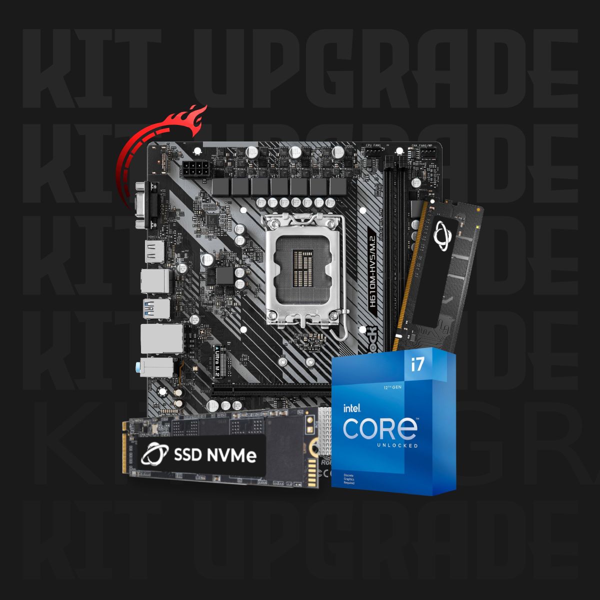 Kit Upgrade Processador Intel® Core™ i7 12700KF + Placa Mãe H610M-HVS + Memória 32GB DDR4 + 1TB SSD M.2