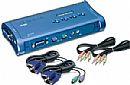 O Chaveador KVM PS/2 4 portas com Áudio permite a você comandar PCs multimídia com apenas um conjunto de teclado, monitor, mouse, microfone e um jogo de alto-falantes.
